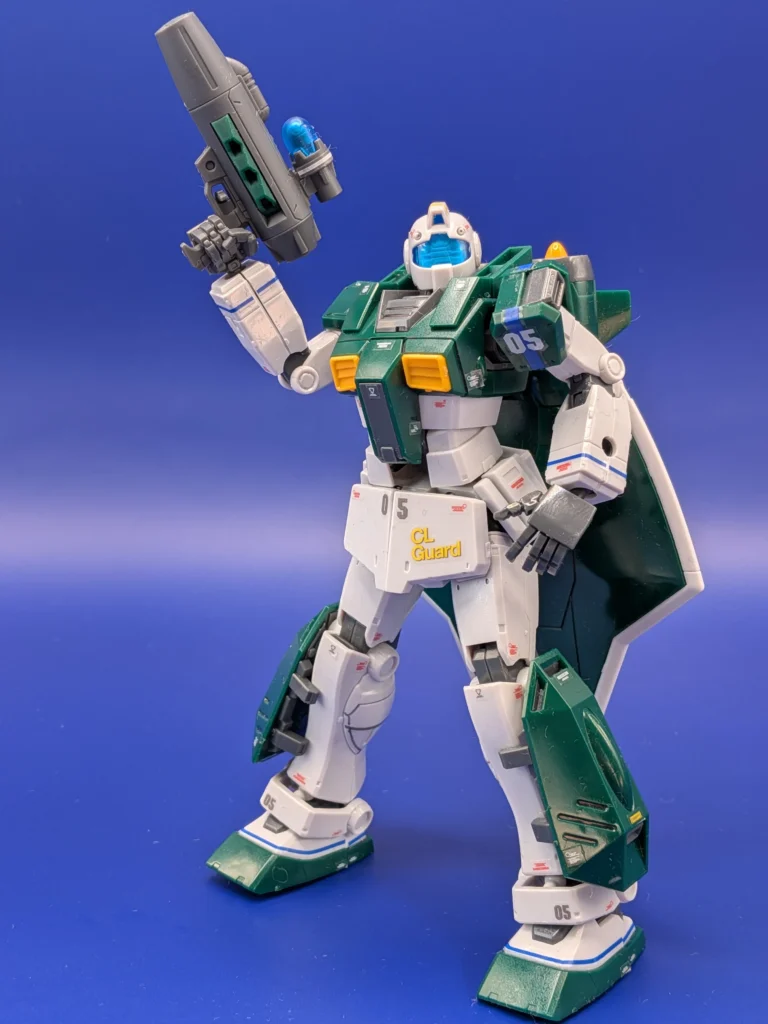 一年戦争当時、ジオン公国軍の水陸両用MSによる海域侵攻に対し、有効な対抗手段を持たなかった連邦軍が、主力機である「RGM-79 ジム」に水中用オプションパーツを装着させた機体です。