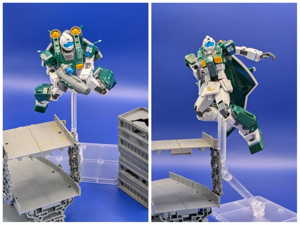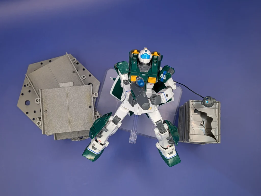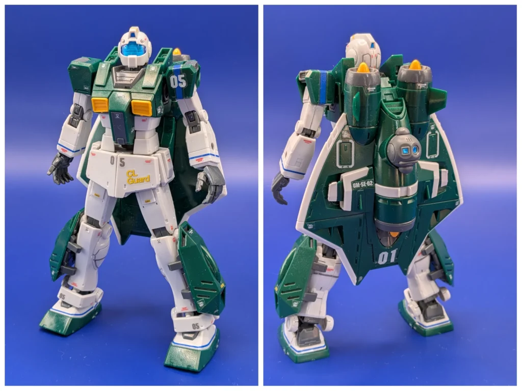 両脚部の側面には、潜行・浮上をコントロールするための補助バラストタンクが装着されています。これにより、本来は宇宙・陸戦用であるジムのフレームを流用しながら、水中での姿勢制御を可能にしました。