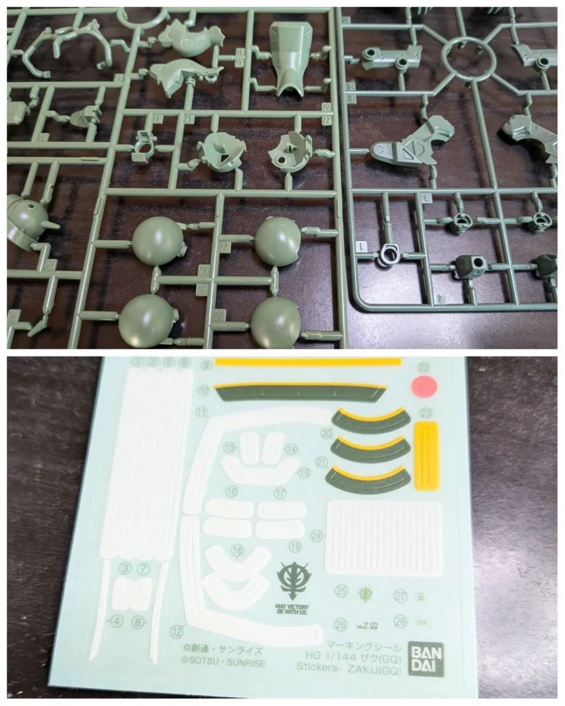 ジークアクスのキットは、細かい色分けが多いキットになりますが、今回のザクも細かい部分があります。