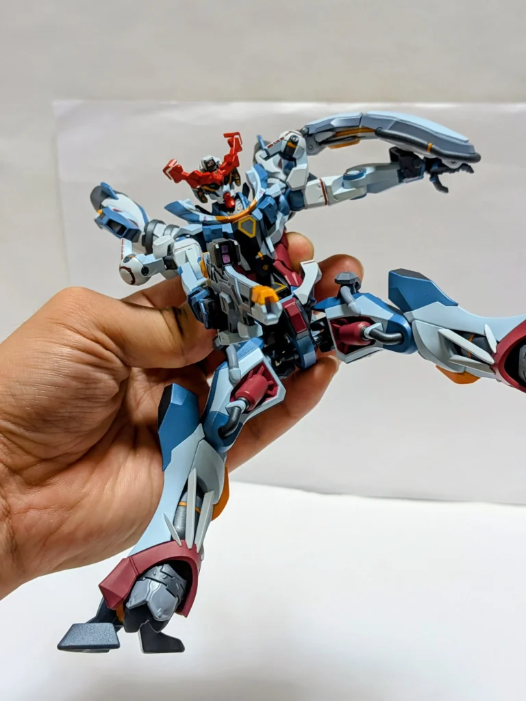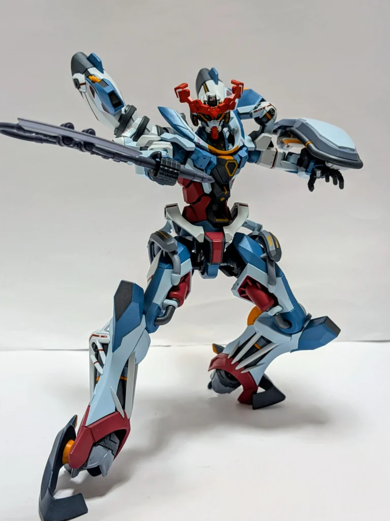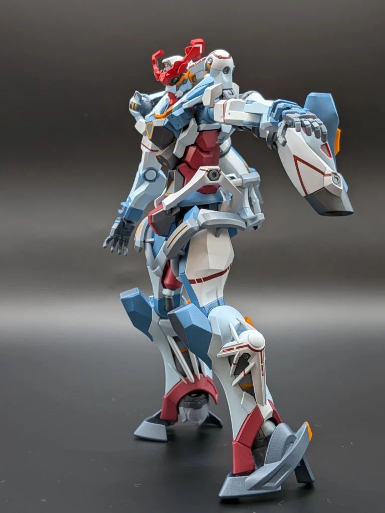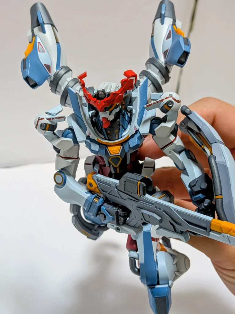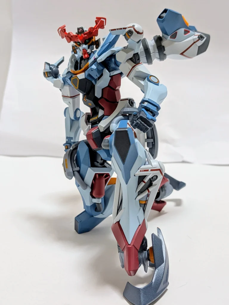 ジークアクスの足は、角度をつけても維持できるので、台座がなくても問題ない。