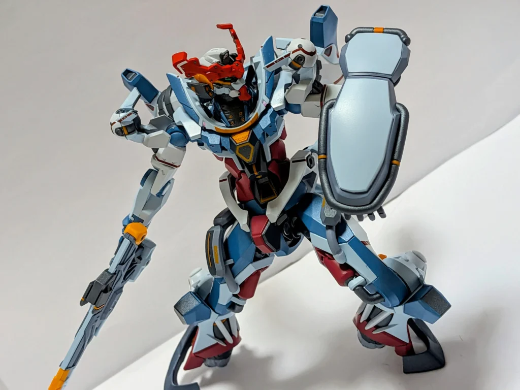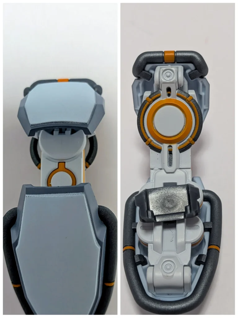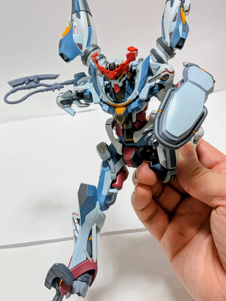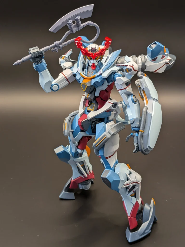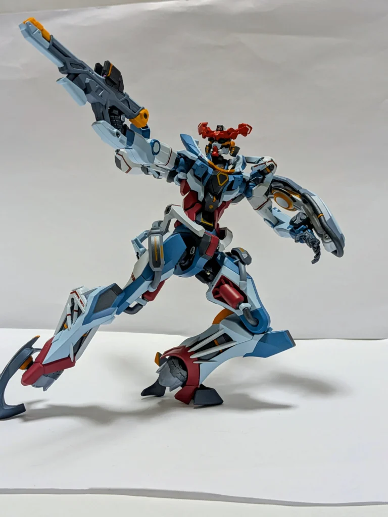 ジークアクスの足は、角度をつけても維持できるので、台座がなくても問題ない。